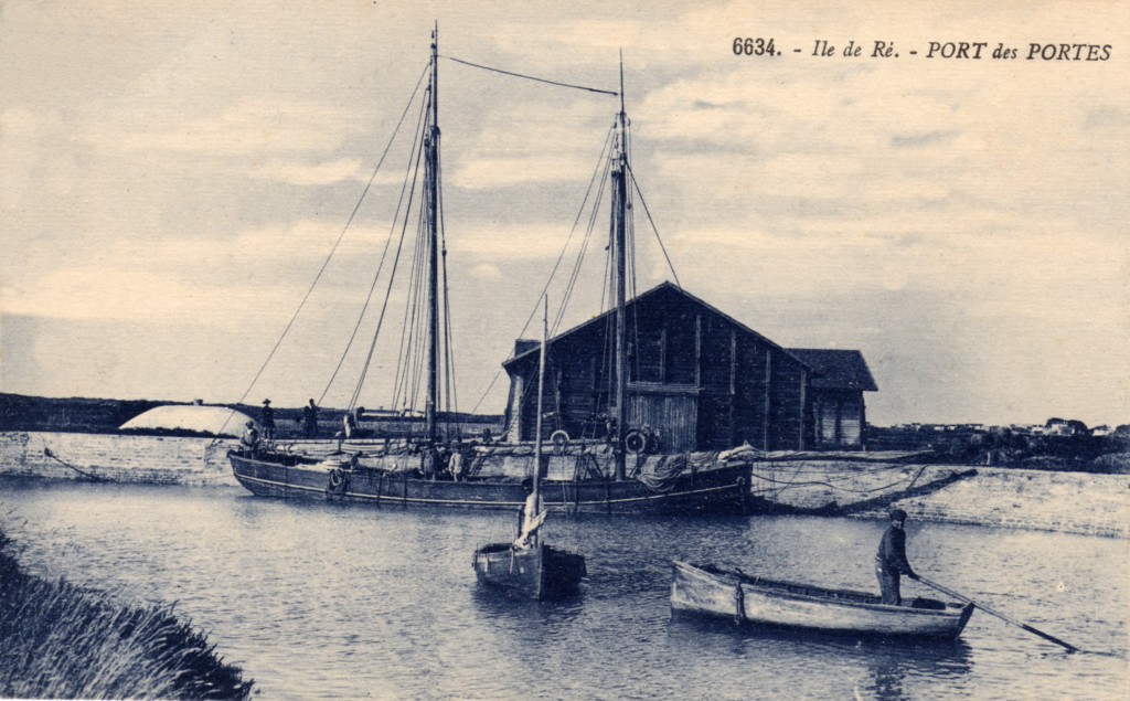 Vers 1914, deux hangars à sel sont construits sur les quais du vieux-port des Portes-en-Ré. Certaines années, jusqu’à 2 000 tonnes de sel y sont stockées. Puis, avec l’abandon progressif des marais salants, la voie maritime perd peu à peu de son intérêt.